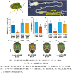 ・ 自然界のカメムシ共生細菌で当該酵素遺伝子が失われていることを発見、共生進化への関与を示唆