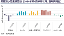 2025年のインバウンド市場は、年間を通じて拡大基調で推移し、訪日外客数と消費総額は過去最高値を更新した。一方で、第4四半期には国・地域別の構成比に変動が見られた。同年第4四半期、中国政府による渡航に関する要請等を受け、12月の同国からの訪日客数は前年同月比で45.3%減少した。これに伴い、同国客の構成比が高い免税店の12月売上高は、前年同月比で17.1%減となった。