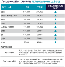 ラグジュアリーブランドの進出が加速した銀座では、今期こそ上限賃料を塗り替える取引は限定的であったものの、年間では上限値が10%上昇し過去最高を更新した。ティア1エリアへの旗艦店需要は一巡した感があるが、新規開発案件の存在により、さらなる賃料上昇の余地を内包している。