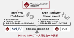 テクノロジーの社会実装を目的とする「早稲田大学ベンチャーズ株式会社(WUV)」に続き、Deep Techに人文社会科学を掛け合わせた「Deep Humanity」を追求する「早稲田大学インパクト・キャピタル株式会社(WIC)」を設立