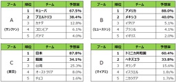 8割超えは前回大会で決勝を戦ったPOOL B(ヒューストンプール)のアメリカと、POOL C(東京プール)の日本でした。POOL A(サンファンプール)は夏季オリンピックで3度の金メダルを誇る伝統国キューバ、POOL D(マイアミプール)はWBC2013の優勝国でもあるドミニカ共和国がそれぞれ突破予想の1位でした。