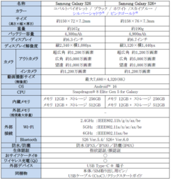 <主な仕様:「Samsung Galaxy S26」、「Samsung Galaxy S26+」>