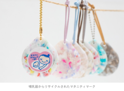 イベント「哺乳びんリサイクルでつなぐ育児のバトン」は、赤ちゃんが使っていた哺乳器がリサイクルを通じてマタニティマークへと形を変え、これから生まれてくる赤ちゃんやそのご家族にバトンとして引き継がれていくことで、育児のつながりとリサイクルへの意識を高める啓発活動として開催しました。哺乳器を使用していた赤ちゃんとご家族の想いを受け取り、生まれてくる赤ちゃんの健やかな成長を願い、回収された哺乳器を“妊産婦にやさしい環境づくりを推進する意味を持つマタニティマーク”へと生まれ変わらせています。
