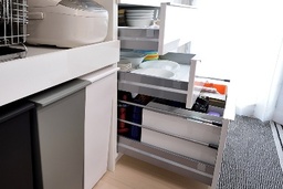 ・ 耐震ラッチや飛散防止フィルム、ソフトクローズ機能などによる収納物の飛散防止