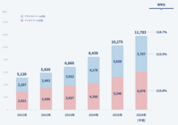 2026年も二桁成長を維持し、前年比114.7%の1兆1,783億円になると予測する。