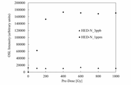 【画像:https://kyodonewsprwire.jp/img/202603045035-O6-04v1XPCM】 Figure. Dependence of OSL intensity on pre-irradiation dose for HED-N_1ppm (irradiation dose: 10 Gy) and HED-N_3ppb (irradiation dose: 100 Gy). (Journal of Materials Science: Materials in Electronics掲載)