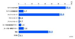 ・実店舗で、最も利用頻度が高い決済手段は、「モバイルQR決済」(35.6%)で、次いで「クレジットカード」(30.9%)「現金」(22.3%)の順。【図表4】