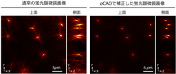 図1 蛍光ビーズの蛍光顕微鏡画像の比較(通常とøCAOで補正)
