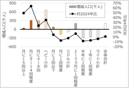 2024年比で-2%, ライトサウナーは対2024年比で-3%の減少となっている。唯一、ライトサウナーにお