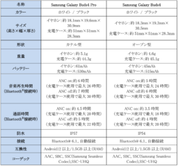 <主な仕様 : 「Samsung Galaxy Buds4 Pro」「Samsung Galaxy Buds4」>