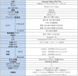 スペック表:S26Ultra(楽天モバイル)