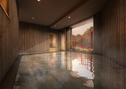 さらに、中房渓谷から直接引湯した泉質自慢の温泉が楽しめる大浴場では、木の温もりを感じられるひのきのお風呂と、趣のある石づくりのお風呂の2つをご用意しています。このたびのリニューアルでは石づくりのお風呂に半露天風呂とオートロウリュ機能付きのドライサウナが誕生。既存のミストサウナとあわせ2種類のサウナが楽しめます。アルカリ性単純温泉のやわらかな湯に浸かりながら、大自然に包まれる癒しのひとときをご堪能ください。また、入浴後は新設する湯上がり処で温泉の余韻を感じながらゆったりとした時間をお過ごしいただけます。
