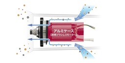 設計から製造まで自社で一貫して手がけた密閉ブラシレスモーターを採用。アルミケースで覆った二重構造により、鉄粉から内部を保護し故障のリスクを低減します。過酷な環境下でも安定した稼働を支え、工場の生産性向上に貢献します。