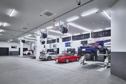 ショールームおよびサービス工場は最新のコーポレート・アイデンティティに準拠し、ブランドの世界観と機能性を両立した施設です。