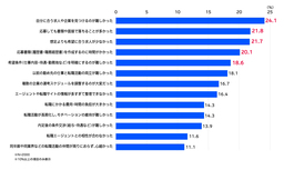 ・転職活動の課題では、「自分に合う求人や企業を見つけるのが難しかった」(24.1%)、「応募しても書類や面接で落ちることが多かった」(21.8%)、「想定よりも希望に合う求人が少なかった」(21.7%)、「応募書類(履歴書・職務経歴書)を作成するのに時間がかかった」(20.1%)、「希望条件(仕事内容・待遇・勤務地など)を明確にするのが難しかった」(18.6%)などが上位に。求人探しの難しさが浮き彫りになり、転職活動に伴う準備や選考対応の負担の大きさもうかがえる。【図表3】