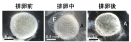 各 環境における実験では、オスとメスのペアを水槽に入れ、1時間ごとにメスを取り出し、卵巣を顕微鏡で観察して排卵の有無を確認した。