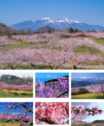 山梨県内で比較的開花が遅く、例年4月上旬~中旬ごろに約60haの桃畑一面をピンク色に染めます。