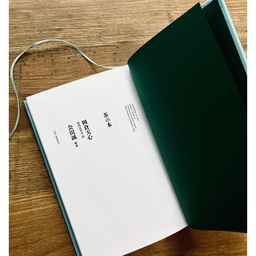 上製本(ハードカバー)、しおり付きの本体。雰囲気のある色紙(表紙)には、書家・加山幹子さんによる書きおろしの書「ブックオブティー」を箔押しています。