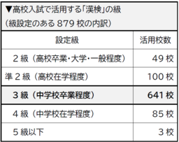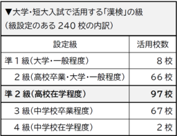 入試での活用状況を調査 高校は5割、大学は6割が「漢検」を評価