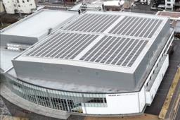 公園の一角にあるアイシンスポーツアリーナ(武生中央公園総合体育館)では、市が令和7年4月に太陽光発電パネルを設置。北陸初となる「ゼロカーボン・アリーナ」が誕生し、「ゼロカーボン・セントラルパーク」の第一歩を踏み出しました。