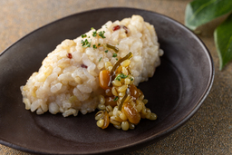 <バルミジャーノ・レッジャーノ雑穀米のリゾット 喜代屋島原納豆みそ添え>※ランチ・ディナー