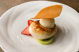 国産のバニラビーンズは、極めて貴重な食材です。細かい温度湿度管理のもと育てられ、最高の状態のバニラビーンズを出荷されている「YAMATO VANILLA BEANS」を使用したスイーツです。香りを存分にお楽しみいただけるようフランスの伝統菓子シブーストとバニラアイスでご提供いたします。
