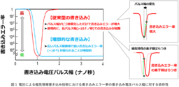 不揮発性メモリーは、電源を切っても情報が保持されるため待機電力がゼロであり、情報機器の省エネルギー化に大きく貢献できると期待されています。中でも、電子のスピン状態を制御するMRAMは、演算チップへの集積化に適しており、情報の読み書きが非常に高速かつ放射線や温度などの環境に対する堅牢(けんろう)性に優れた不揮発性メモリーの方式の一つです。しかし、現行のMRAMでは情報を安定に制御するために大きな電流が必要で、書き込み時の消費電力の増大が課題となっていました。一方、現在開発が進められている電圧駆動型MRAMでは、低消費電力での書き込みが可能なものの、電圧による書き込みには高精密な高速電圧パルスの生成が必要であり、書き込み電圧のわずかな変化によって書き込みエラーが生じるという問題を抱えていました。また、素子の特性のばらつきによって最適な書き込み電圧パルス幅が素子ごとに異なるため、従来の書き込み方法では、電圧駆動型MRAMの安定な動作や大容量化は困難でした。