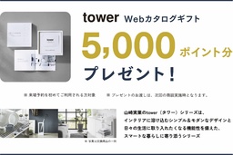 2026年4月2日~6月30日の期間中、大和ハウスの公式WEBサイトから「住宅展示場」もしくは「分譲地」にご予約の上、ご来場いただきアンケートに回答。さらに次回の商談を予約&実施いただいた方には「towerのWebカタログギフト5,000ポイント分」をプレゼントします。