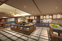 従来のコース料理の形式から、地元食材を活かしたビュッフェスタイルのお食事へと変更いたします。「山梨の美味と富士の恵みを味わう」をテーマに、和洋約80種のお料理をお楽しみいただけます。ライブキッチンでは、山梨ならではの地元食材を中心に、作り立てのお料理の数々をご用意しており、富士エリアならではの食の魅力を、より気軽にお楽しみいただけます。
