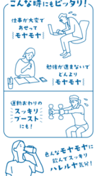 本商品は、やさしい甘さとさわやかな酸味に仕立てたヨーグルト風味で、さらっと軽い口当たりの乳酸菌飲料です。さわやかな味わいを楽しみながら、さまざまな場面で感じるモヤモヤ気分をすっきりと解消するお手伝いをします。パッケージ側面には飲んでスッキリするおすすめシーンを訴求しています。