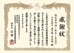 ・公益財団法人 日本児童養護施設財団への寄付を実施し、感謝盾を受領