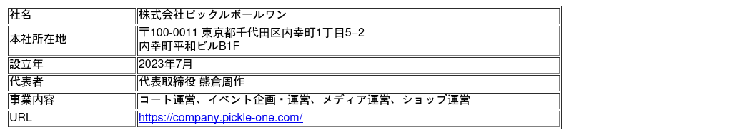 <ピックルボールワン社 企業概要>