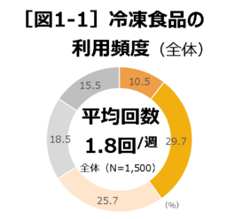 冷凍食品の利用頻度は、全体平均で1週間に1.8回