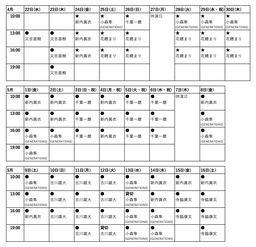料金:★=4,500円(税込)●=5,500円(税込)