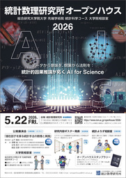 本講演会は統計数理研究所オープンハウスのプログラムのひとつです。会場では公開講演会のほか、全研究者や大学院生による研究内容ポスタ―発表や、統計に関わる質問や相談に1件30分程度でお答えする統計よろず相談室なども開催します。こちらもぜひご参加ください。