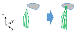 図4.モデルスライスデータを参照し、サポート先端を自動で折り曲げて最適化