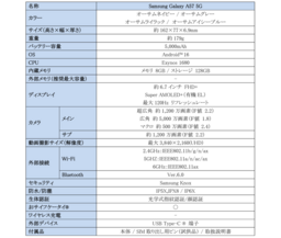 <主な仕様:「Samsung Galaxy A57 5G」>