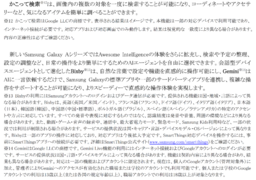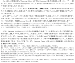 ※1 一部の機能はSamsungアカウントへのログインが必要な場合があります。正確性、完全性および信頼性について、いかなる保証もいたしかねます。機能の使用可否は、国や地域、OSやOne UIのバージョン、デバイスモデル、キャリアによって異なる場合があります。また、一部の国や地域では、AI使用に関する年齢制限のため、未成年は利用が制限される場合があります。