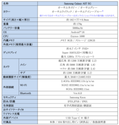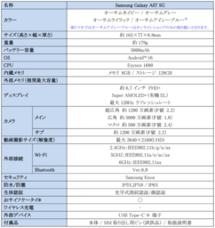 <主な仕様:「Samsung Galaxy A57 5G」>