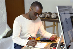 セルジュ・ムアング氏は、西アフリカと日本の文化的象徴の間における美的対話の可能性を探求するアーティストであり、本展では青藍工房とのコラボレーション作品を展示します。 本共同展示においても、青藍工房の掲げるテーマ「生命の根源」が重要な軸となっています。カメルーンの文化が象徴する太陽・祝福・生命力と、日本の阿波藍が内包する自然・時間・循環の思想が交差し、異なる文化のあいだに流れる根源的な生命のエネルギーを可視化する試みです。文化の“裂け目”において出会う二つの表現は、分断を超えて、生命の根源において共鳴する創造の場を生み出します。