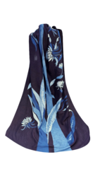 【橋本陽子】藍染作家。1931年徳島市生まれ。30代で阿波藍の世界に入り、自由な表現を可能にする藍のろうけつ染を確立。1971年より本格的に作家活動を開始し、数十回にわたる個展開催を通じて阿波藍の芸術的可能性を切り拓く。フランスの公募展「ル・サロン」および「サロン・ドートンヌ」に入選し、パリで作品を発表。