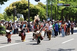 各国の華やかな民族衣装を披露する「国際交流パレード」を実施