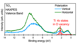 早稲田大学理工学術院の溝川貴司(みぞかわたかし)教授、勝藤拓郎(かつふじたくろう)教授、三吉野節(みよしのたかし)修士課程学生(現NEDO職員)、東京都立大学 武上大介(たけがみだいすけ)特任助教(研究当時:早稲田大学 理工学術院 リサーチフェロー)、ドイツのマックスプランク固体化学物理学研究所のL. H. Tjeng教授、大阪公立大学大学院工学研究科の播木敦(はりきあつし)准教授らの研究チームは、酸素欠損を持つ岩塩型構造のTiO(チタン酸化物)、VO(バナジウム酸化物)を高輝度放射光を用いた硬X線光電子分光※3,4で観測することによって、酸素欠陥の周囲に形成されたTi 4s軌道およびV 4s軌道に、電子が収容されていることを発見いたしました。