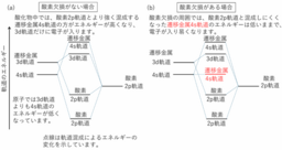 一方、酸素イオンが遷移金属に配位する酸化物中では、図1(a)に示すように、遷移金属4s軌道は酸素2p軌道とより強く混成することで大きくエネルギーが上昇する一方、3d軌道はそれほど上昇しません。そのため、酸化物中でイオンとなった遷移金属では、3d軌道より先に4s軌道から電子が抜けます。通常の遷移金属酸化物では、遷移金属4s電子は存在せず、遷移金属3d電子が物理的・化学的性質を決定しています。このような遷移金属酸化物(d電子系と呼称されることもあります)は、磁性や超伝導など多彩な物性を示すとともに様々な触媒機能を示すことから盛んに研究されています。