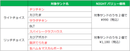 対象商品が拡大!人気サンドがお得に楽しめる「NIGHTバリュー」 メニュー改定およびリニューアルのお知らせ