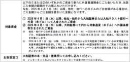 これまでのご愛顧への感謝の意を込めて、大和ネクスト銀行および大和証券株式会社(以下、大和証券)は、2026年5月1日(金)から2026年6月30日(火)までの期間、下記のとおりキャンペーンを実施いたします。