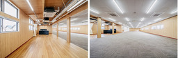 ・ BF構法で約9mのロングスパンを実現し、大空間の執務エリアを作りました。壁が少なく広々としたワークスペースで快適に過ごせます。