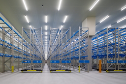 倉庫は冷凍温度帯で約4,900パレットが収容可能な移動ラック倉庫と、仕分ソーターやピッキング用のデジタルアソートシステム(DAS)を備えています。