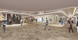 □内装 「水面(みなも)」をテーマに[Water Flow]というコンセプトで、水のゆらぎや浮遊感を感じさせる空間演出を採用。光や曲線による自然な誘導設計により回遊性を高め、ガラスケーシングの統一ファサードが開放感と上質さを演出するフロア構成。