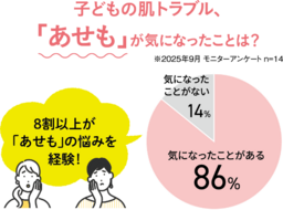 2025年9月に実施したモニターアンケート※では、「子どもの肌トラブル、『あせも』が気になったことがある」と回答した方が86%という結果になりました。